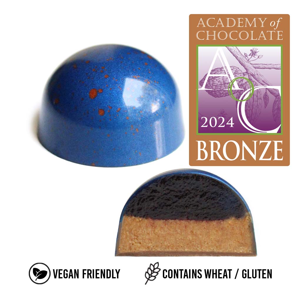 Un favori incontesté des amateurs. Praliné croquant et onctueux au beurre de biscuit Biscoff, garni d'une délicieuse confiture de bleuets de l'Ontario. Une combinaison parfaite !
